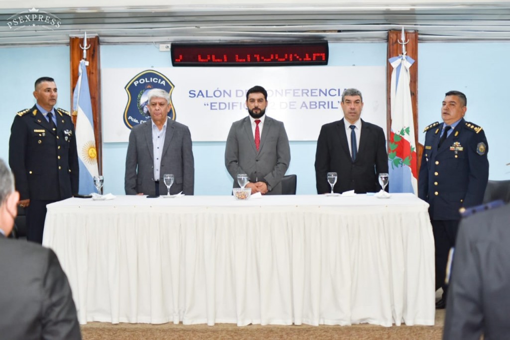 El Ministro Miguel Zárate participó del 5° Aniversario de la Defensoría General del Policía, junto al Secretario de Seguridad, Pedro Fuentes; el Jefe de Policía, Roque Jaimes y el Subjefe Cristian Gabriel Quintero.