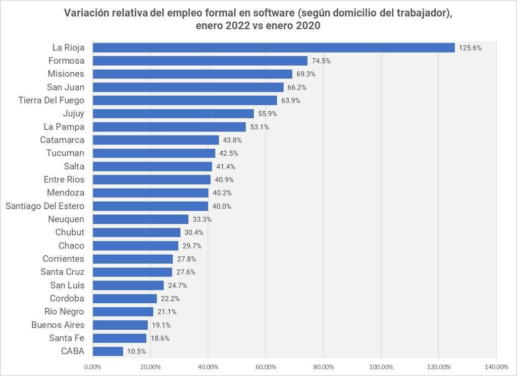 Con un pico inconcluso de empleos registrados, la industria del software en La Rioja creció un 125.6% desde enero del 2020 hasta el mismo mes de 2022.