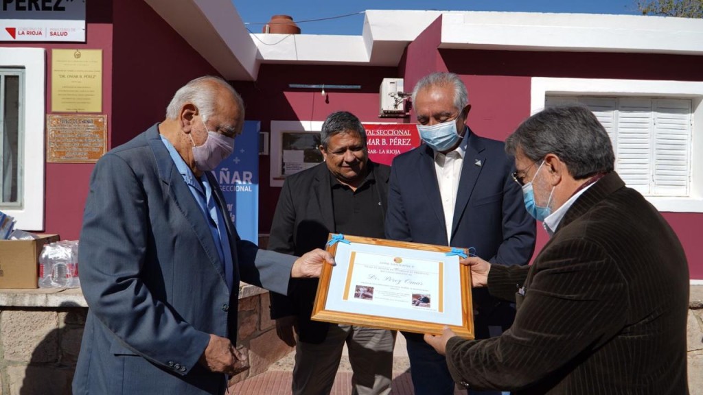 A través de la imposición del nombre realizada este jueves, el Hospital de Chañar pasó a llamarse Dr Omar Bartolomé Pérez, en homenaje al doctor referente de la salud pública en esa comunidad y el departamento. En un emotivo acto se hizo un reconocimiento en vida al profesional, se colocó la placa con el nombre y se realizó la entrega de equipamiento e insumos para el hospital.