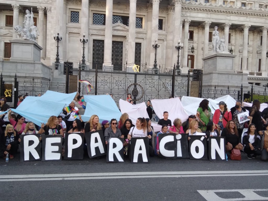 �??Agrupaciones de movimientos LGBTI+ se congregaron en las inmediaciones del Congreso Nacional para festejar los diez años desde la sanción de la ley con la que se dio "vuelta de página en la historia de judicialización, estigmatización, criminalización y patologización de las personas travestis, transexuales y transgénero".