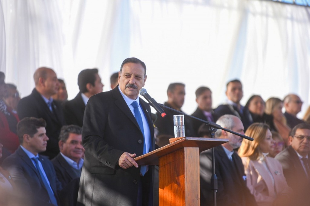 En primera instancia, Quintela saludó a las autoridades presentes, al Ejército Argentino y especialmente a los Granaderos a Caballo que “vinieron a compartir con nosotros una jornada especial”, al igual que a la Brigada Blanca y a la Fuerza Aérea Argentina. Además de todas las alumnas y alumnos que participaron del desfile.