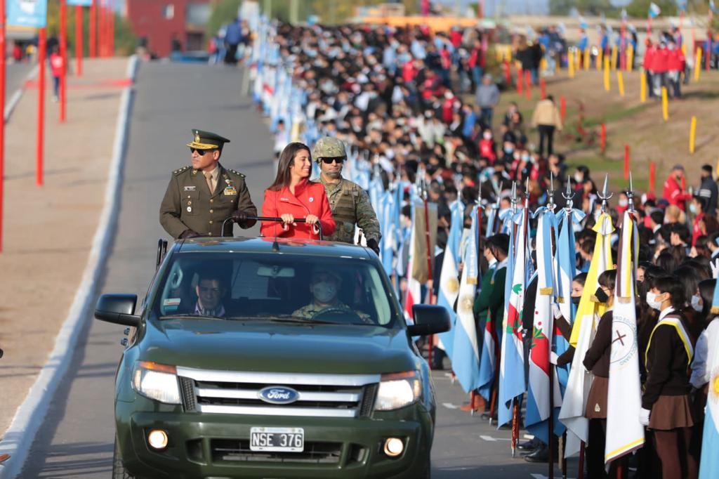 Seguidamente, la vicegobernadora dijo: "En este día de la Patria, de nuestra queridísima República Argentina, tenemos que hacer una doble reflexión porque ya pasaron más de dos siglos de ese primer grito de libertad, de esa gesta del 25 de Mayo, tenemos que pensar si esos valores de nuestros patriotas, de libertad, de independencia, de autodeterminación de los pueblos efectivamente están concretados en la República Argentina".