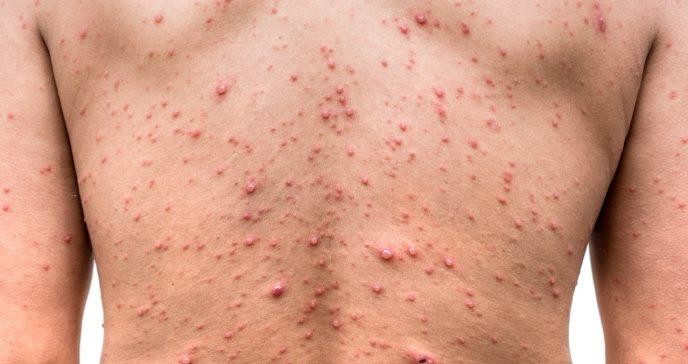 Los síntomas clásicos son: fiebre, dolor de cabeza, muscular o de espalda, inflamación de ganglios y cansancio. Entre 1 y 5 días posteriores se agrega erupción en la piel, que pasa por distintos estadios hasta formar una costra que luego se cae. Las personas infectadas contagian hasta que se hayan caído todas las costras.