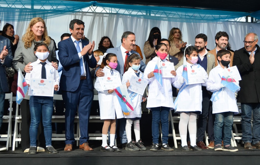 Acompañaron al mandatario provincial, el ministro de Eduación, Ariel Martínez; la diputada nacional, Gabriela Pedrali; diputadas y diputados provinciales, ministros de la Función Ejecutiva, secretarios, subsecretarios, concejales, directores y coordinadores de la Función Ejecutiva Provincial, directores de nivel, supervisoras y supervisores, directivos, docentes, abanderados, escoltas, alumnas, alumnos y padres de los diferentes establecimientos educativos.