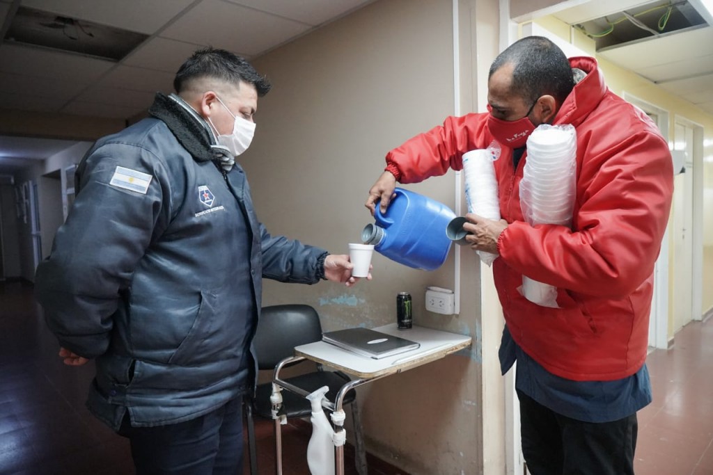 Los conocidos "chalecos rojos" están trabajando, desde entrada la noche, asistiendo a trabajadores municipales, policías y personal de salud que están prestando servicios en las calles de la ciudad, como así también en hospitales y clínicas donde los ciudadanos necesitan un paliativo ante las bajísimas temperaturas que se registran debido a la ola polar que atraviesa el país.