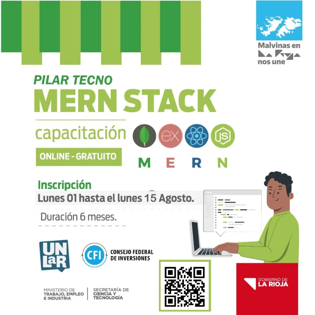 El Ministerio de Trabajo, Empleo e Industria, a través de la Secretaría de Ciencia y Tecnología, y con financiamiento del Consejo Federal de Inversiones (CFI), lanzó los cursos gratuitos “PILAR TECNO: “MERN-STACK” y “Cloud Computing”, los cuales forman parte del “Programa de Formación Con Empleabilidad”, el Plan de capacitación para la promoción del desarrollo tecnológico y la rápida inserción laboral.