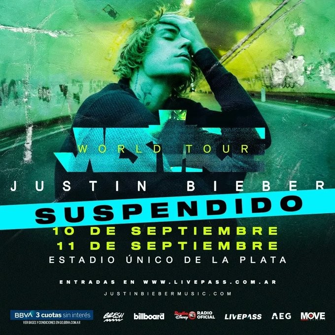 "Lamentamos informar que el evento de Justin Bieber en el Estadio Único de La Plata ha sido suspendido por cuestiones personales del artista y por supuesto totalmente ajeno a la voluntad de esta empresa", dice el texto de Move Concerts Argentina.
