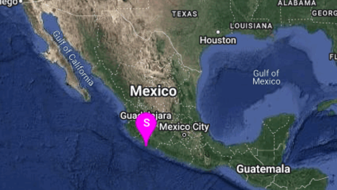 El epicentro se ubicó al sur de Coalcomán, Michoacán, según datos del Sismológico Nacional. De acuerdo con el Servicio Geológico de Estados Unidos (USGS, por sus siglas en inglés), el movimiento telúrico inició a unos 37 kilómetros al sureste del municipio Aquila a unos 15.1 kilómetro de profundidad.