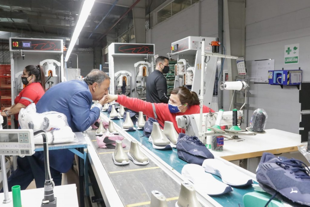 Además, se hizo el anuncio de una inversión que incluye una nueva nave y la ampliación de diez líneas de producción que llevarán su capacidad a cinco millones de pares anuales de zapatillas y 1.300 personas empleadas en su planta ubicada en la Provincia.