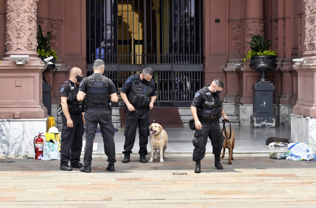 Personal del área de explosivos de la Policía Federal activó esta noche el protocolo de seguridad ante una amenaza de bomba en la Casa Rosada y en el