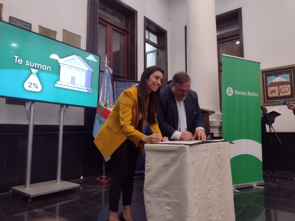 Este jueves se firmó el convenio entre la vicegobernadora, Florencia López, y el presidente de Nación Seguros de Retiro, Máximo Rodríguez, por el cual los empleados de la función legislativa podrán optar por adherirse a ésta empresa. Los mismos deberán hacer un aporte del 1%, a los que se les sumará un 2% aportados por el estado y así lograr fondos que usufructuarán cuando accedan a la jubilación.