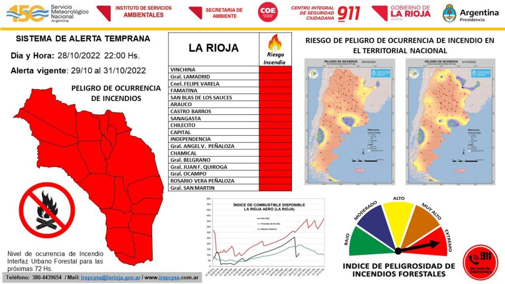 �??El Ministerio de Seguridad, Justicia y Derechos Humanos, informa que debido a las altas temperaturas registradas en nuestro territorio, está vigente el Alerta de Peligro Extremo de Incendios Forestales durante 72 horas, por lo que se solicita a la población tomar las precauciones correspondientes, evitando realizar cualquier tipo de foco ígneo en zonas de pastizales, sitios descampados, campo abierto o montaña.