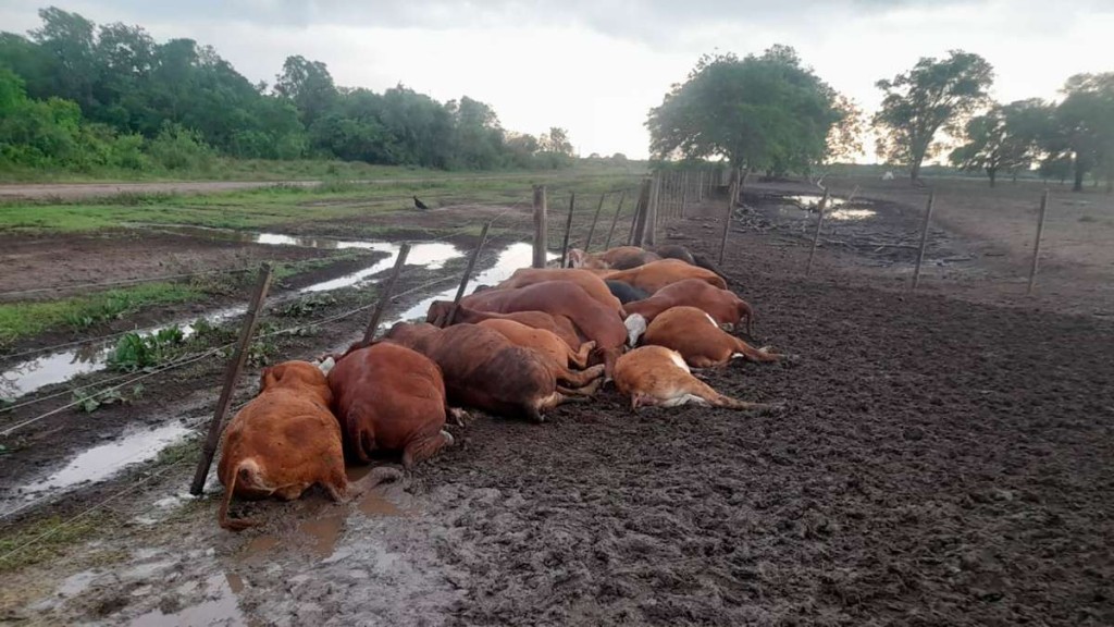 Unos 65 terneros fueron fulminados este sábado por un rayo en la estancia Las Cañitas, en la zona sur de Formosa, en el marco de las fuertes tormentas que afectan a esa provincia, informaron fuentes policiales.