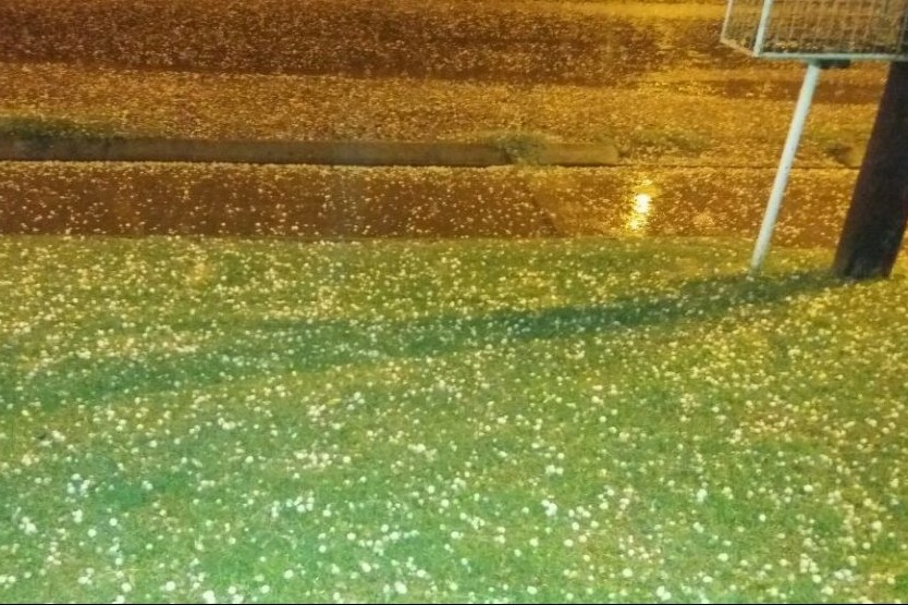 Tras más de 10 minutos de granizo intenso comenzó una fuerte lluvia que anegó calles y provocó daños de distinta consideración. Como consecuencia del temporal, que duró poco más de 30 minutos, se registraron daños de consideración en vehículos, plantas, y calles.