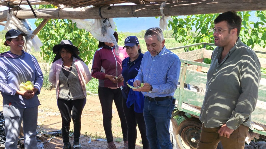 Molina, Pérez y funcionarios de Agricultura visitaron una de las fincas, perteneciente a la familia Castro, que está en plena cosecha de melón, sandia y zapallo. Los presentes aprovecharon para degustar y dejar muy buenos comentarios sobre los melones y las sandías.