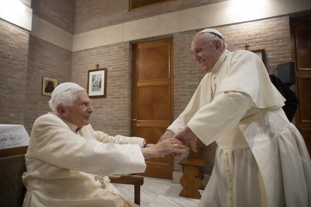 Su salida del Vaticano fue la que le dio lugar a Jorge Bergoglio para convertirse en el papa Francisco I y de esta manera, existieron dos pontífices en simultáneo. A pesar de que prometió mantener un silencio absoluto durante el papado de Francisco, estalló un escándalo al conocerse un informe que lo responsabilizaba sobre actos de encubrimiento de abusos sexuales a menores.
