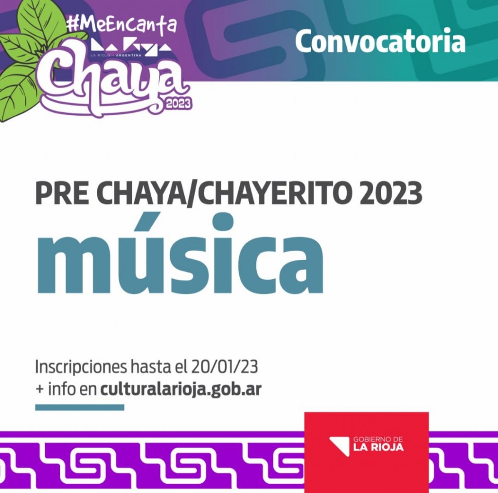 La Secretaría de Culturas dependiente del Ministerio de Turismo y Culturas, invita a participar de las convocatorias de “La Rioja Chaya 2023”.