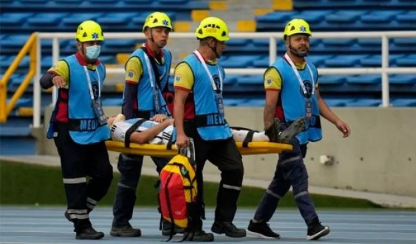 Momento en el que Facundo Buonanotte es retirado del estadio y generó preocupación en el plantel argentino
