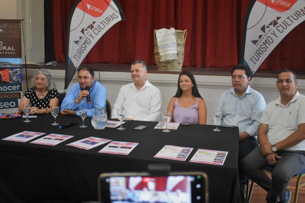 El ministro Gustavo Luna y la secretaria Patricia Herrera, junto al intendente del departamento General Felipe Varela, Yamil Sarruf, fueron los encargados de anunciar la grilla y los detalles del evento, que tendrá como números de cierre a Lucas Sugo, Estelares y Guitarreros.