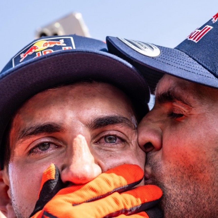 El piloto salteño se consagró campeón en la categoría Motos y protagonizó un momento histórico en la premiación disputada en Arabia Saudita.