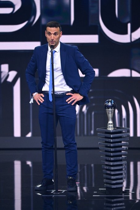 Tras ser anunciado como el ganador, el entrenador dio un discurso plagado de gratitud. "Agradecer por el premio a todos, especialmente porque es un premio que lo votan los futbolistas y para mí tiene un valor enorme, agradecerles a los jugadores, a esos 26 que nos llevaron a la gloria, sin ellos no hubiéramos podido conseguir nada. Estoy eternamente agradecido al presidente de la AFA por poder ser entrenador de esta Selección maravillosa. A Pablo, Aimar, Roberto Ayala, Walter Samuel, Martín Tocalli, al profe Luis Martín, Matías Manna, Rodrigo Barrios; a todo mi cuerpo técnico, que más que eso son amigos. Y como siempre digo, no hay cosa más linda que ver feliz a tu gente, a tu país. Ver a esa gente emocionada en las calles, disfrutando, no tiene precio. Han jugado para ellos los jugadores. Ese triunfo es para ellos. A mi familia, mi esposa, mis hijos, que están acá, a mi mamá, papá y hermanos que están empujando en el pueblo y que gracias a ellos soy lo que soy. Y a todo nuestro país", dijo un emocionado Scaloni en el escenario del evento.