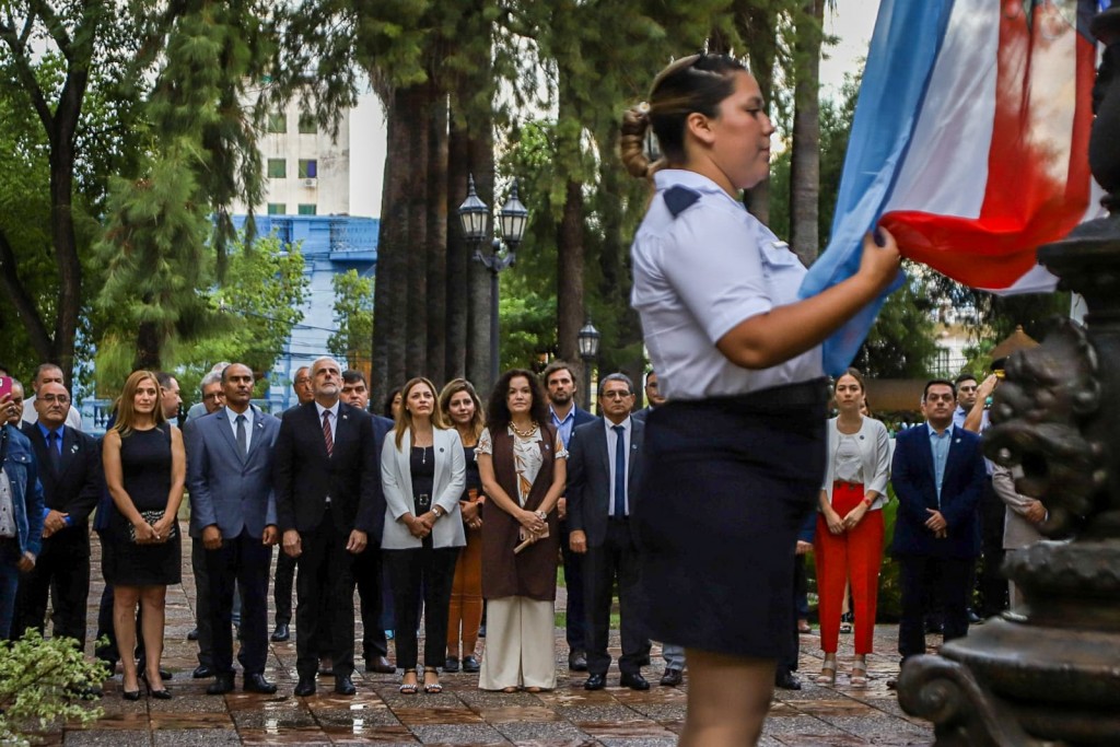 La vicepresidenta primera y diputada Teresita Madera presidió el acto en conmemoración de los 203 años de la Autonomía Provincial en el patio Madres de Plaza de la Legislatura. Participaron autoridades representantes de las tres Funciones y el Obispo, Dante Braida.