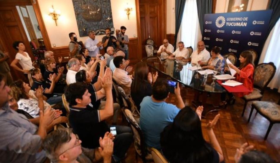 El gobernador Juan Manzur, oficializó el acuerdo salarial alcanzado con los gremios que nuclean a los trabajadores estatales, el cual será del 39,5% y permitirá alcanzar un mínimo de $150.000 en el presente mes de marzo. Además, habrá una suba del 60% en los sueldos básicos.