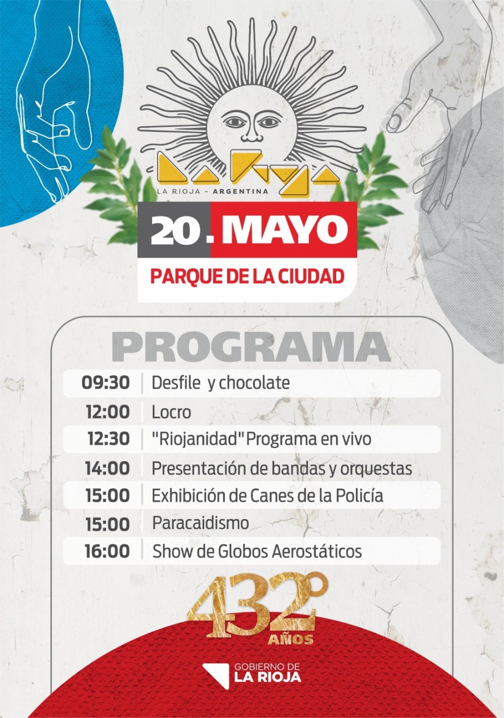 El Gobierno de la Provincia realizará este sábado 20 de Mayo, a partir de las 9.30 en el Parque de la Ciudad, las actividades conmemorativas en el marco de un nuevo aniversario de la Fundación de la Ciudad de La Rioja. Asimismo comunicaron que habrá un servicio especial de Rioja Bus.