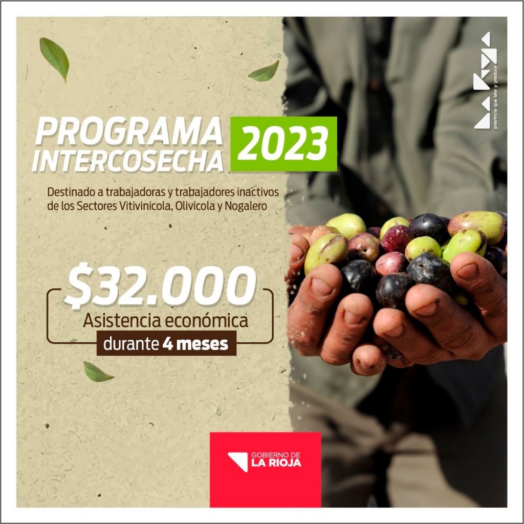 El Gobierno provincial comenzó con la primera etapa del Operativo de Inscripción en el marco del "Programa Intercosecha 2023" destinado a trabajadoras y trabajadores inactivos de los sectores vitivinícola, olivícola y nogalero, quienes percibirán una asistencia económica no reembolsable de $ 32.000 durante un período de 4 meses. Las inscripciones estarán habilitadas hasta el próximo 13 de julio.