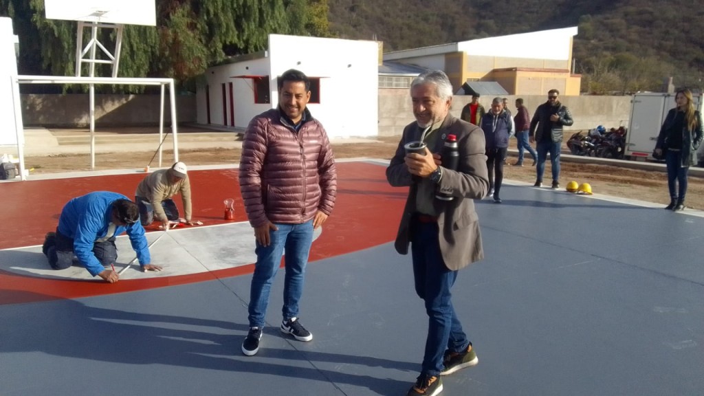 En la jornada de este martes, el ministro de Desarrollo Social, Alfredo Menem, y el secretario general de la Gobernación, Armando Molina, visitaron la obra que se ejecuta en cercanías a la plaza de ese barrio de la zona oeste de la ciudad capital. El predio contará con todas las comodidades para la práctica de varias actividades.
