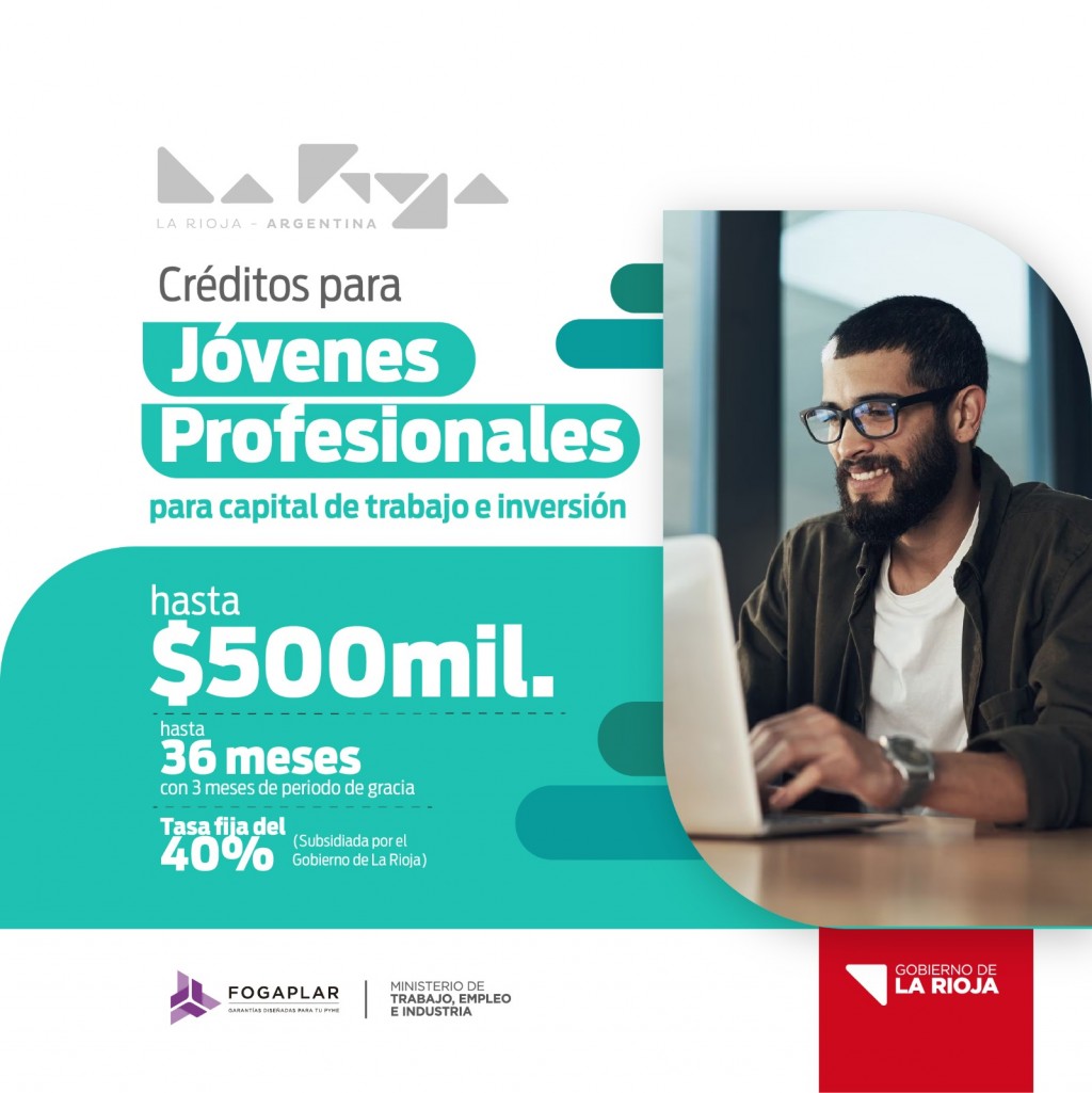 Los créditos están destinados a jóvenes profesionales con título de grado que no superen los 40 años de edad; con garantía de Fogaplar 100% bonificada y un monto de hasta $500.000 en 36 cuotas y una tasa fija del 40%.