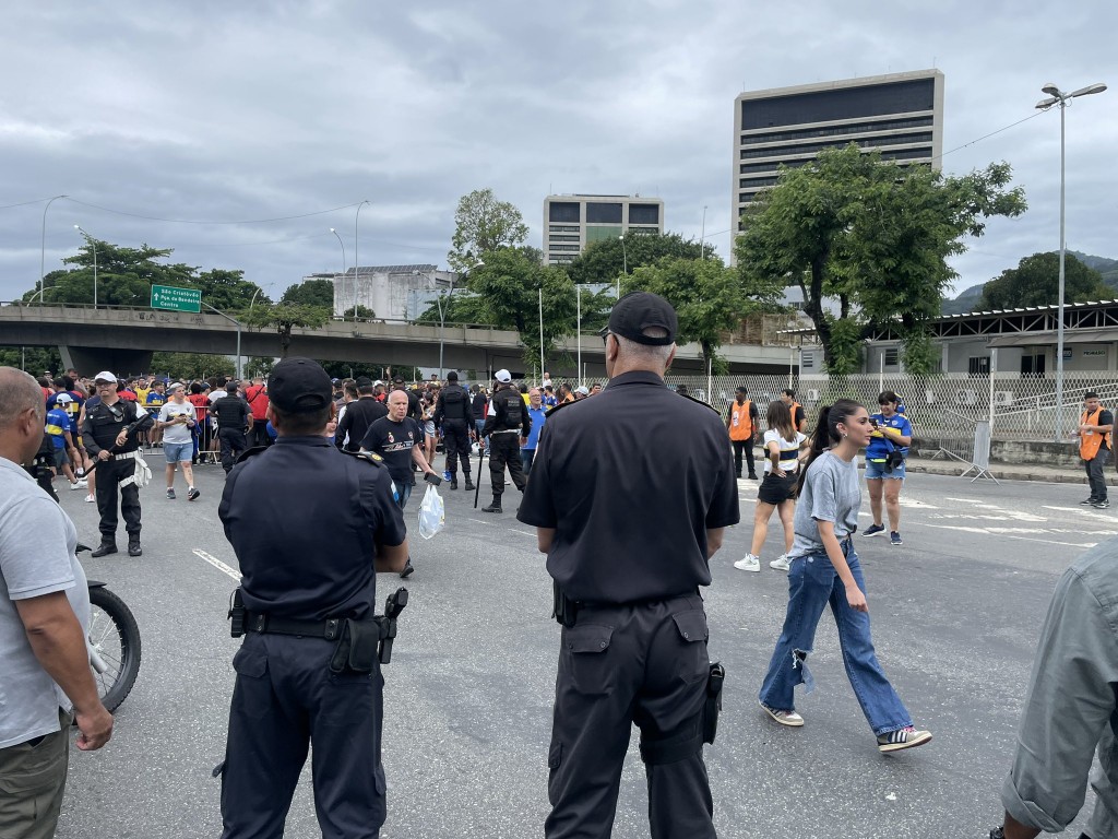 Cuando La 12, barra brava de Boca, y los hinchas comenzaron a ingresar al estadio Maracaná, la policía empezó a lanzar balas de goma y gases lacrimógenos para reprimirlos.