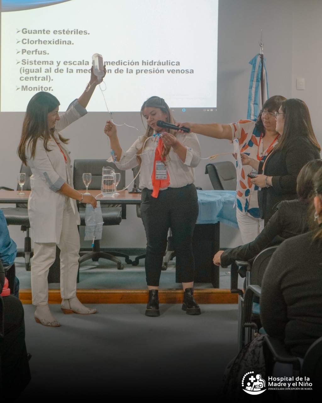 Con la presencia del Director Médico, Dr. Camilo Argañaraz, el responsable del Área UTIP, Dr. Gustavo Brizuela, la Lic. Norma Páez de Enfermería y la Lic. María Isabel Flores, encargada del Área enfermería de UTIP, se llevó a cabo la jornada sobre "terapia intensiva pediátrica".