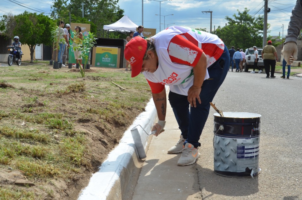 En ésta oportunidad, los equipos de limpieza urbana comenzaron una intervención integral en zona sur, precisamente en el boulevard ubicado entre calle Algarrobo Blanco y Avda. Santa Rosa, de desmalezamiento, pintura, colocación de árboles y erradicación de microbasurales.