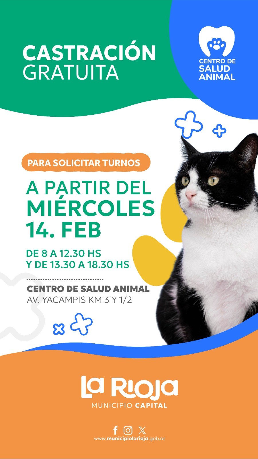 La Dirección de Protección Animal municipal informó que desde el próximo Miércoles 14 de febrero estarán disponible, sin costo, los turnos de castración en el Centro de Salud Animal, ubicado en Av. Yacampis KM 3 y 1/.2.