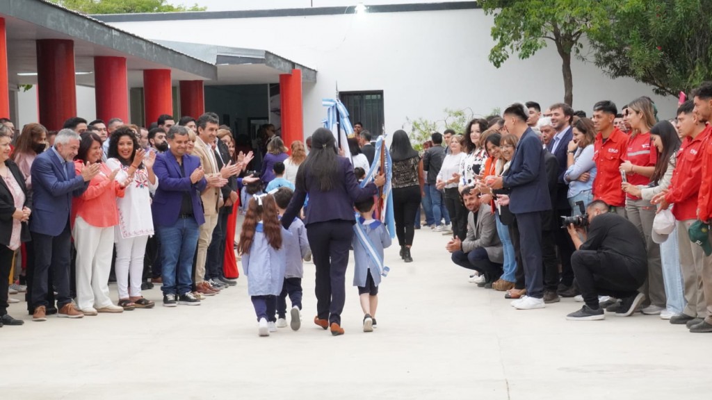 El acto central se realizó en la Escuela municipal N° 1 Juan Manuel Fangio, con la presencia del intendente Armando Molina, la viceintendenta Monica Diaz Dalbano, el ministro de Educación Ariel Martínez, concejales y demás funcionarios.