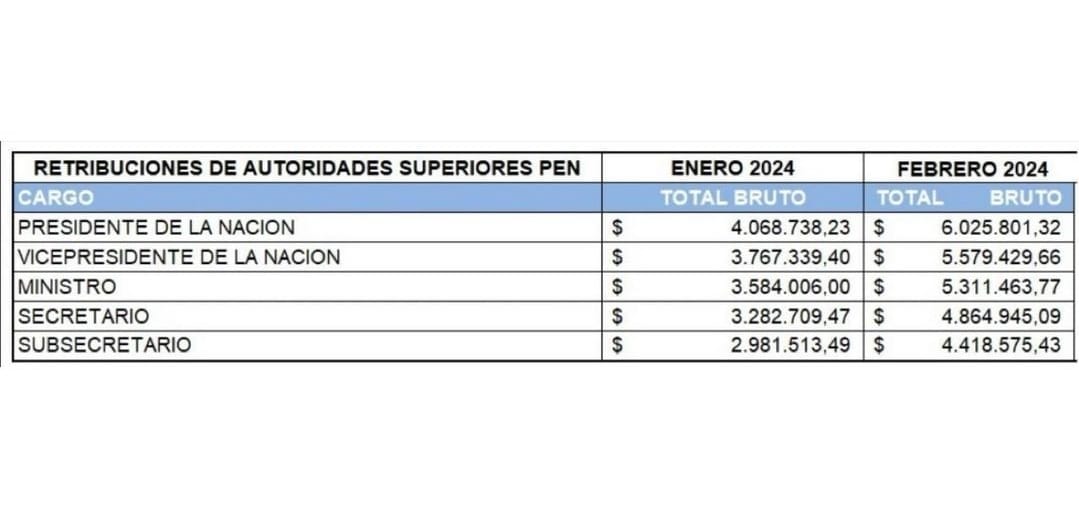 Con lo dispuesto en el citado decreto, Javier Milei pasó a cobrar un salario de más de 6 millones, en tanto que sus funcionarios percibirán sueldos superiores a los 4 millones de pesos.