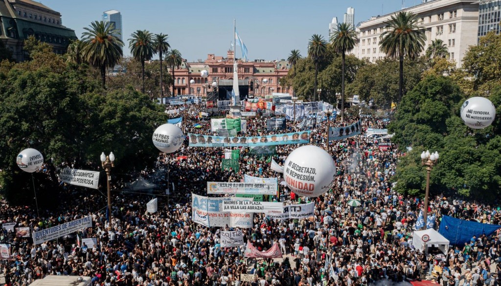 Luego, la referente de Madres de Plaza Mayo-Línea Fundadora Taty Almeida afirmó la administración de Milei puso en marcha un protocolo represivo y que, al igual que el ex presidente Mauricio Macri, la “persecución opositores volvió a ser una práctica cotidiana”.
