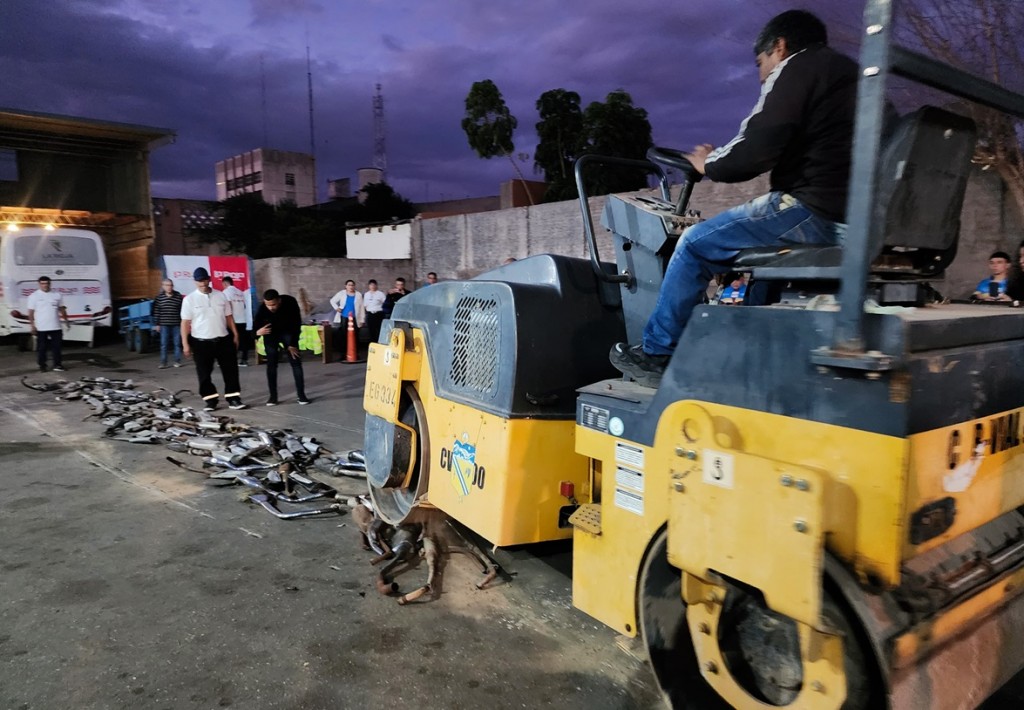 La destrucción de caños de escape ruidosos se concretó el pasado viernes por la tarde en el corralón de Tránsito Municipal y los mismos habían sido decomisados por superar los decibelímetros permitidos, en diversos operativos vehiculares llevados a cabo por el Municipio de Capital y bajo ordenanza N° 6273, por ruidos molestos.
