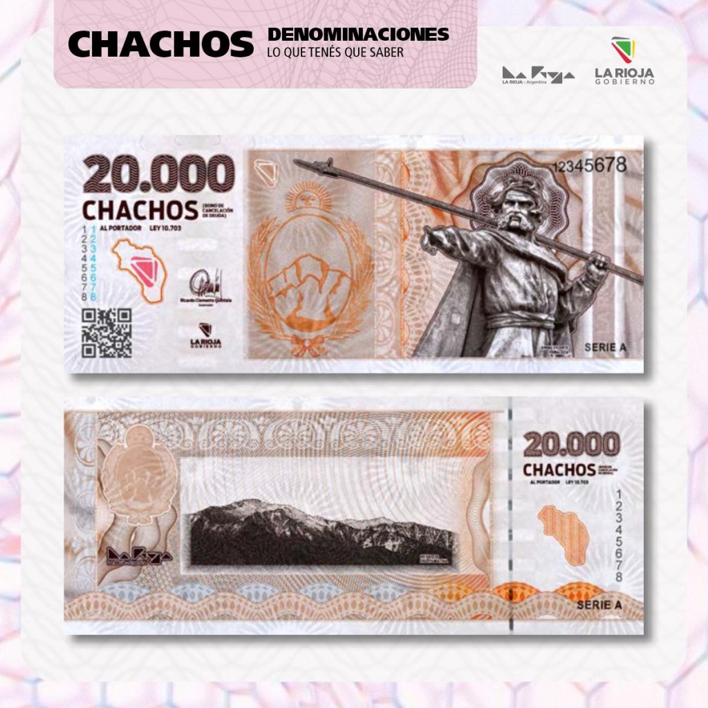 El Gobierno provincial logró, en menos de 30 días, que más de 800 comercios tanto de capital como del interior acepten trabajar y recibir los BOCADE – Bono de Cancelación de Deuda- conocidos como "Chachos". Dicho bono, fue impulsado con el propósito de potenciar el circuito financiero local, reactivar la economía y el consumo en La Rioja.