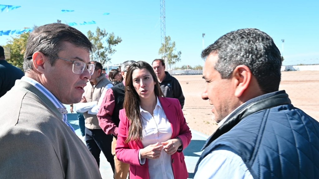 El Ministro de Producción y Ambiente, Ernesto Pérez, acompañado por la vicegobernadora, Teresita Madera y el intendente del Departamento Gral Belgrano, Juan Urbano, puso en marcha del sistema de riego presurizado en la cancha del Club Joaquín V. González de Olta. Esta iniciativa no solo mejorará la calidad del campo deportivo, sino que también promoverá un uso eficiente y responsable del agua que en los llanos riojanos es vital su cuidado.