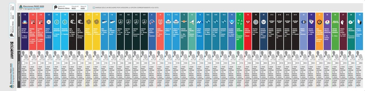 Por cada tramo y por cada alianza electoral habrá un casillero vacío, el elector deberá seleccionar solamente una opción por cada categoría: si marca dos o más casilleros el voto se considerará nulo. En tanto, si no marca ningún casillero se considerará voto en blanco en esa categoría específica y no habrá un casillero específico para el voto en blanco.