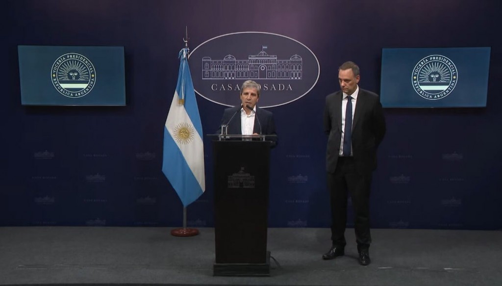 El Ministro de Economía Luis Caputo juntos al vocero presidencial Manuel Adorni anunciaron la eliminación de retenciones a las economías regionales y la baja de los derechos de exportación para todos los cultivos hasta junio próximo.