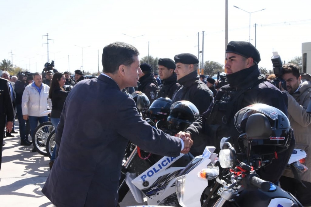 En el marco del Plan Estratégico de Seguridad Provincial anunciado tiempo atrás, el gobernador Sergio Casas, junto al ministro de Gobierno Héctor Duran Sabas, hizo entrega de 18 camionetas Ford Ranger, 26 automóviles Ford Ka sedan, 40 motos 125 cc. y 40 motos 250cc, para la Policía de la Provincia. El objetivo es dotar a la fuerza policial del recurso material y humano necesario para garantizar el óptimo funcionamiento del nuevo sistema de seguridad.