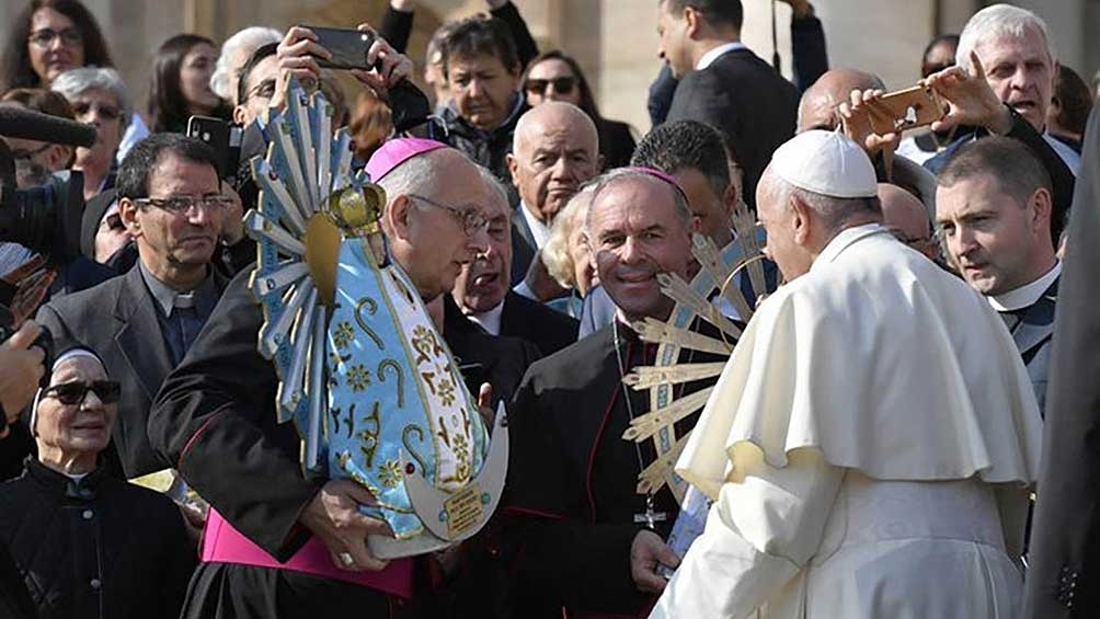 La imagen llegará este domingo a las 7 al aeropuerto de Ezeiza, donde será recibida con honores por efectivos de fuerzas armadas y de seguridad y veteranos de guerra; y será trasladada en caravana hacia la Basílica Nuestra Señora de Luján donde -a las 13- se celebrará una misa de bienvenida, que presidirá el titular del Episcopado, monseñor Oscar Ojea.