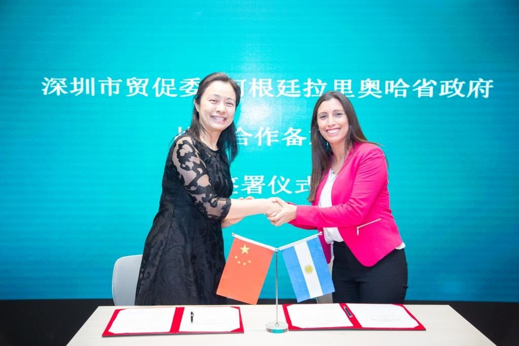 La comitiva riojana, que se encuentra en la República Popular China, es encabezada por la vicegobernadora electa Florencia López, quien efectivizó la firma de un Convenio de Cooperación con la representante de Comercio Exterior del Municipio de Shenzhen, Tang Jin.