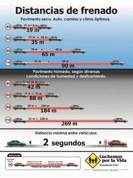 Hay que tener presente que a mayor velocidad, mayor es el tiempo y la distancia que necesita para detener el vehículo y más graves las consecuencias ante cualquier falla mecánica, como el reventón de un neumático, la mala maniobra de otro conductor o cualquier otro imprevisto.