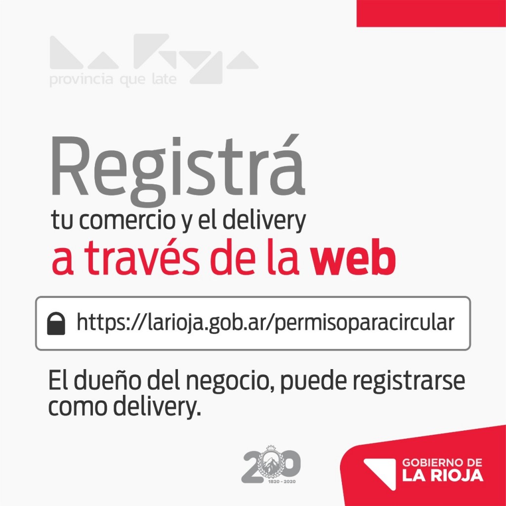 De este modo, se informó que los interesados en registrarse deberán ingresar a la página https://larioja.gob.ar/permisoparacircular/, donde los titulares de los comercios que deseen trabajar, deberán crear una cuenta de usuario para registrar el local, a sus trabajadores, como también al personal de servicio de delivery. En caso de tener los empleadores, otras sucursales o diferentes rubros, también deberán consignarlos.