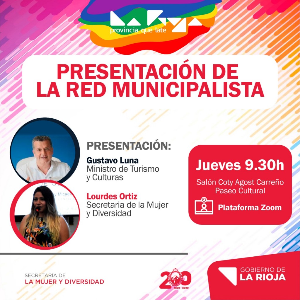 La Secretaría de la Mujer y Diversidad pondrá en marcha, este jueves, la Red Municipalista conformada por integrantes de todas las áreas municipales de género de la Provincia. La presentación virtual, que será a las 9.30 desde el Paseo Cultural, estará encabezada por el ministro de Turismo y Culturas, Gustavo Luna y la secretaría del área, Lourdes Ortiz.
