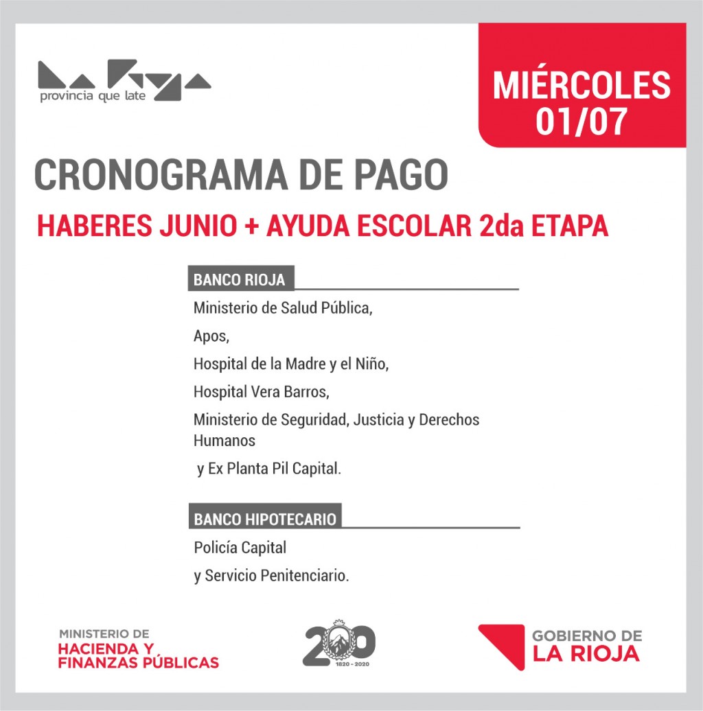 El gobierno provincial anunció el pago de los haberes correspondientes al mes de junio y la segunda etapa de la ayuda escolar, desde este miércoles 1 de julio.